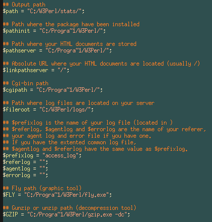 - $referlogLe nom de vos fichiers de log de reference (situé dans $fileroot) si vous ne disposez pas de tel fichier, laissez une valeur vide. (Ex : $referlog = "referer_log")