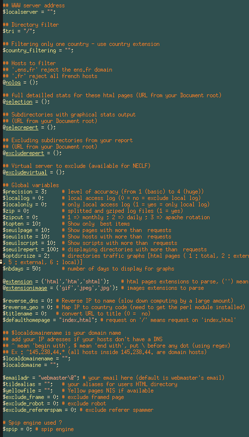 - $locallogPour avoir des stats sur son domaine local également. (Ex : $locallog = 1 pour activer les stats sur son domaine local)